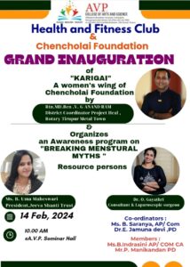 Health & Fitness Club and Chencholai foundation organized Grand inauguration of “KARIGAI” A Women’s wing of Chencholai foundation on 14.02 2024.@ 10.am in Seminar Hall
