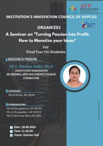 Institution’s Innovation Council has organize a seminar on “Turning Passion into profit: How to monetize your ideas” on 20.08.2024.