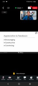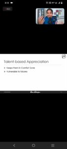 Ms. Meera Natarajan, NLP practitioner, Founder, Student success hub acted as the resource person for the session. She explained how appreciation and feedback to be given with the help of few published research in psychology. Totally the session witnessed 160 participants.