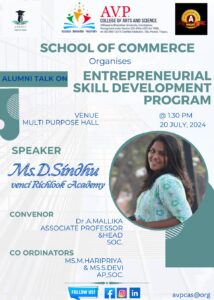 School of commerce organizes an Alumni talk on Entrepreneurial Skill Development Program on 20.7.2024.