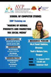 School of Computer Studies organized EDP Training on “Making of Herbal Products and Marketing via Social Media” on 13.08.2025