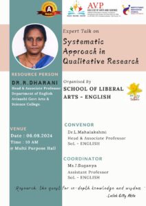 School of Liberal Arts – English has planned to organizes Expert Talk on the topic of Systematic Approach in Qualitative Research on 06.08.2024.