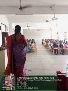 The expert talk on “Systematic Approach in Qualitative Research” was hosted by the School of Liberal Arts—English in association with Institutions Innovation Council on 6th August 2024 at 10 a.m. in Multi-Purpose Hall. Dr. R. Dharani, Head and Associate Professor, English Department, Avinashi Government Arts and Science College, acted as the event’s resource person. She discussed the significance of approaches in research writing. Nearly 120 students participated and learned about the subject of qualitative research.